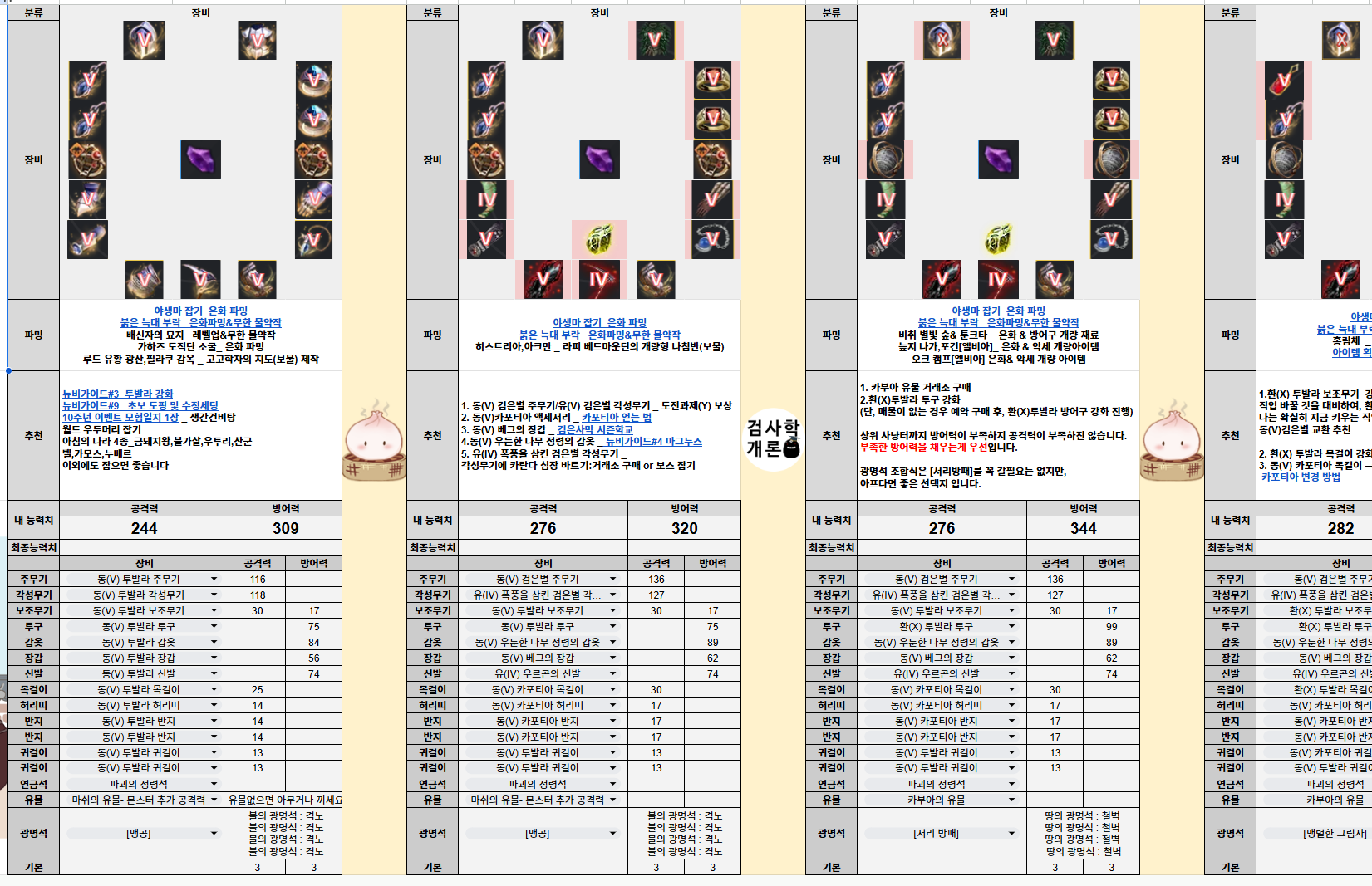 1. 전승/각성에 따라서 하단 시트를 변경해서 확인하세요