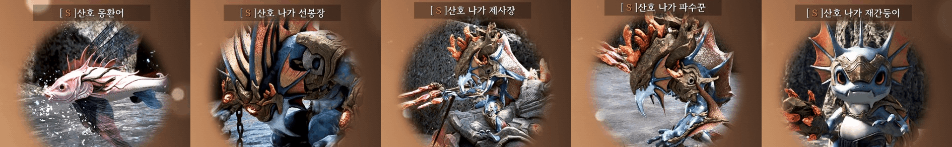 등장하는 몬스터는 총 5가지로 산호 몽환어, 산호 나가 선봉장, 산호 나가 제사장, 산호 나가 파수꾼, 산호 나가 재간둥이입니다.