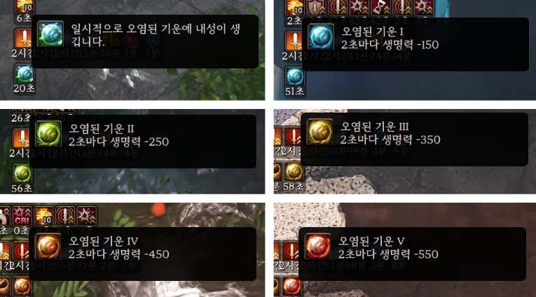 - 오염도 내성의 시간이 남아 있을 때는 괜찮지만 그 시간이 끝나는 즉시 오염도 디버프가 들어오며,