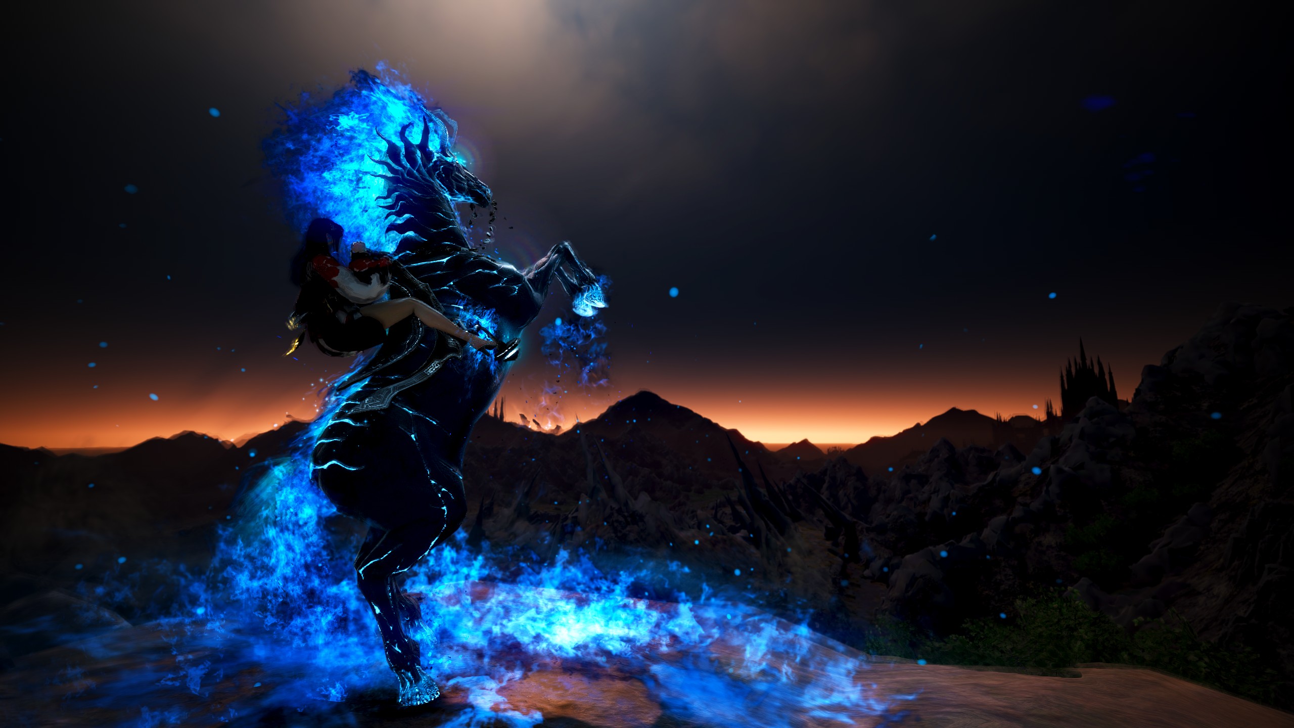 황량해진 대지를 가로지르는 푸른 불꽃의 둠.