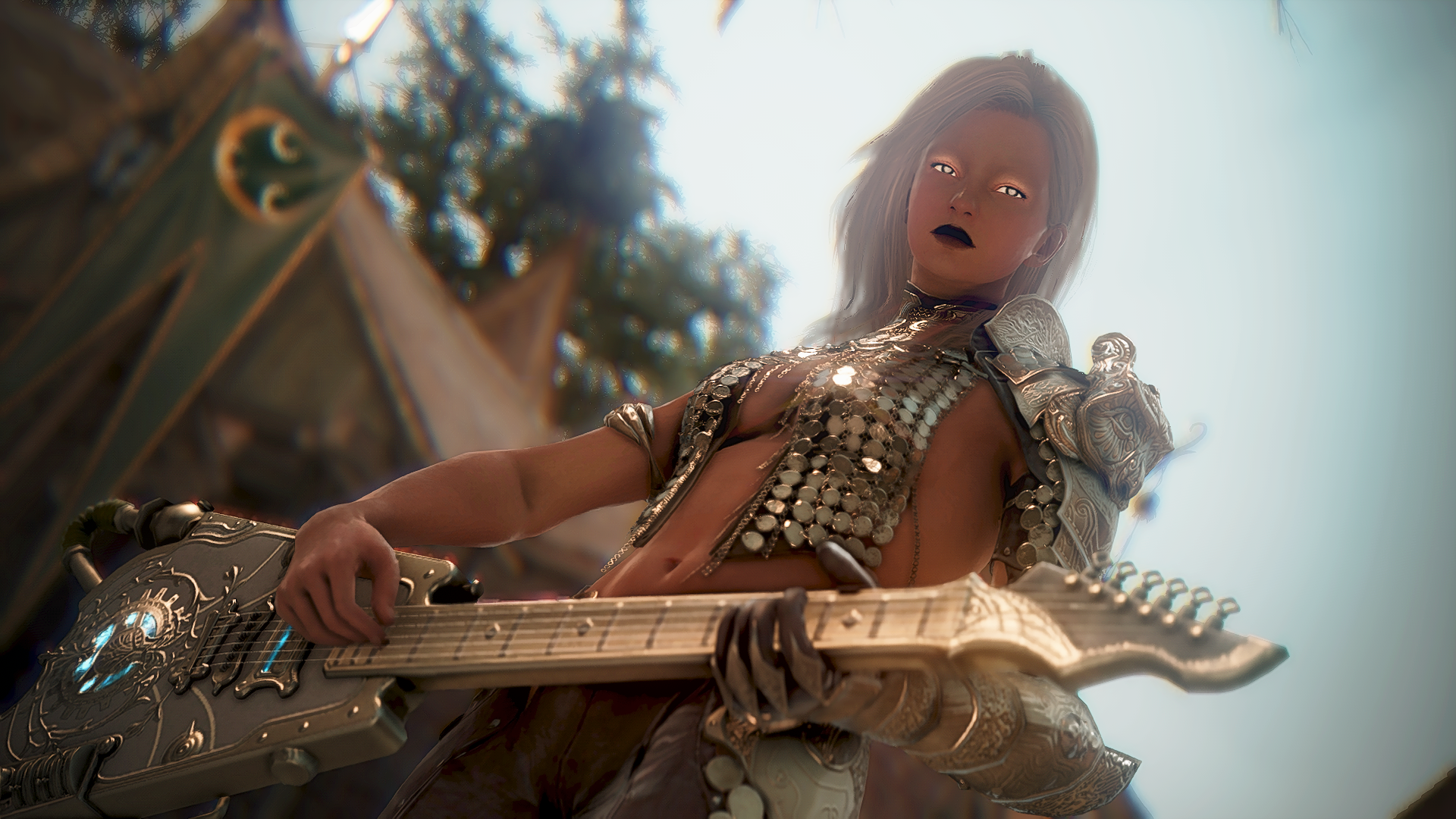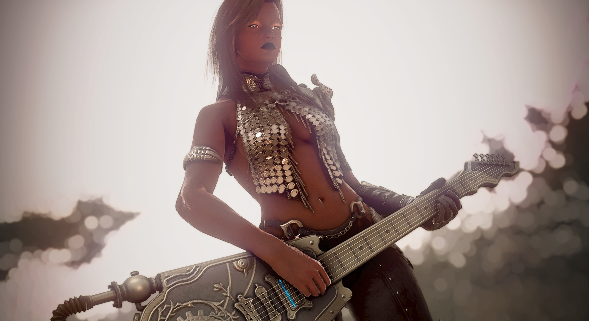 이국적인 화장과 옷차림, 기타를 연주하는 모습이 맞물려