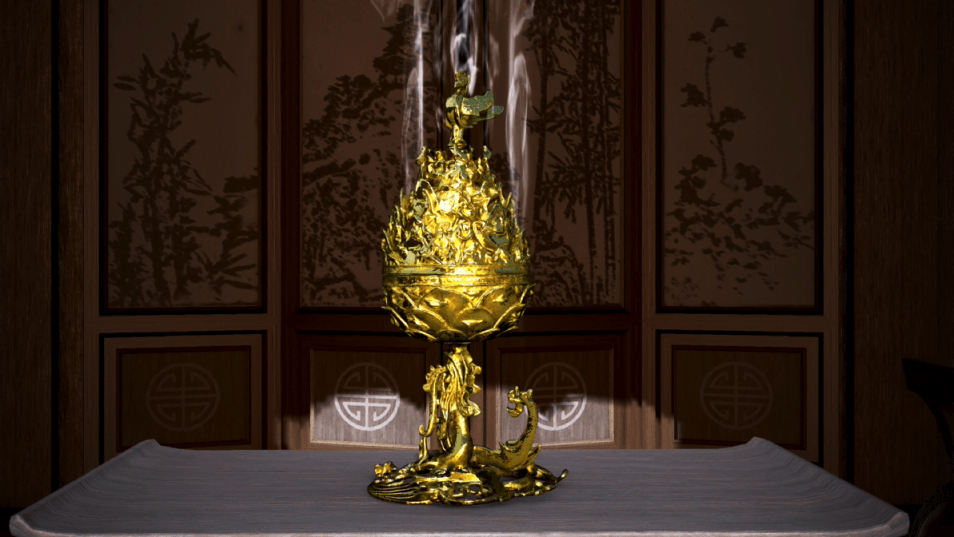 ▲ 은은한 연무가 퍼지는 금동대향로의 모습