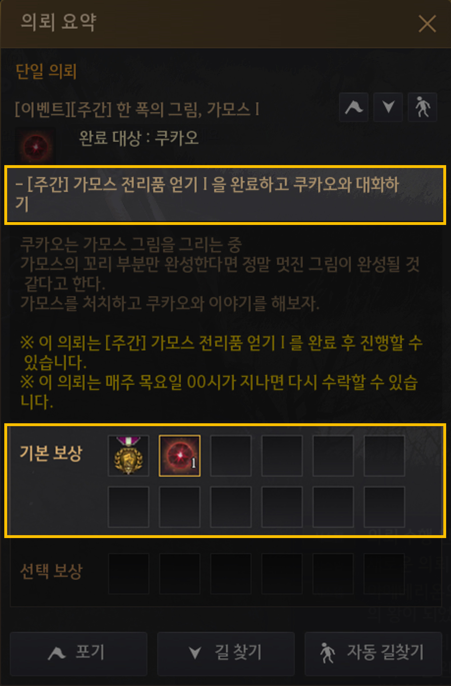 가모스 토벌 후 이벤트 의뢰 완료하면