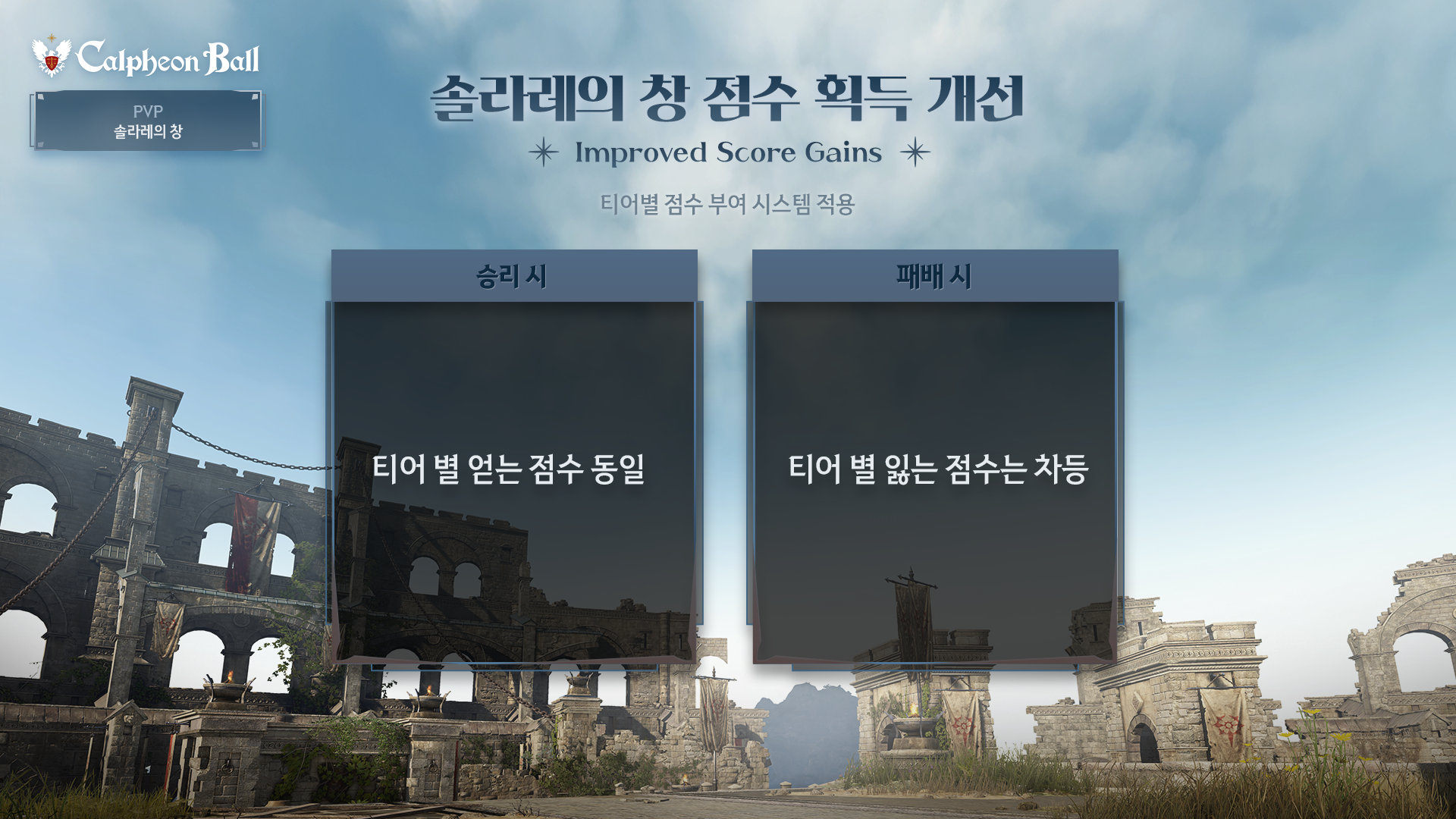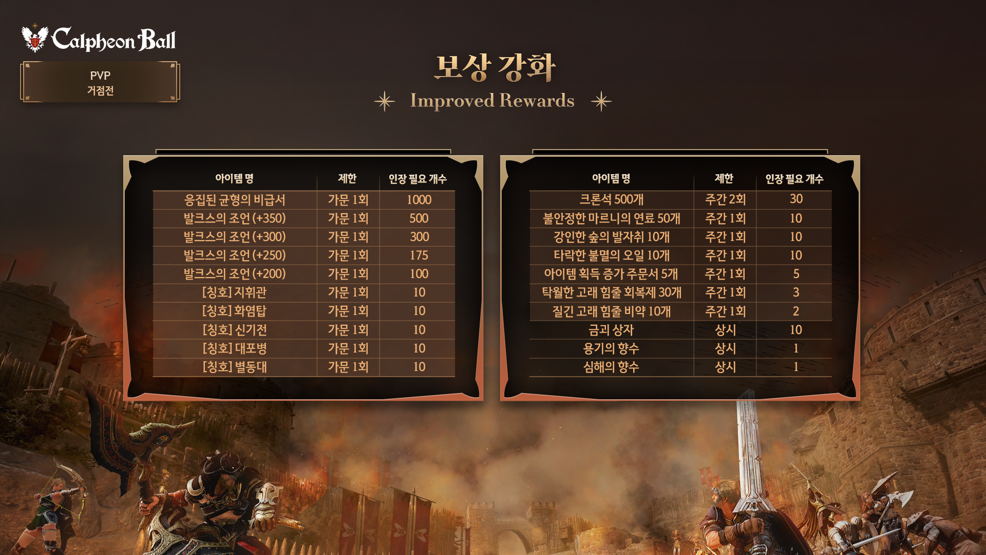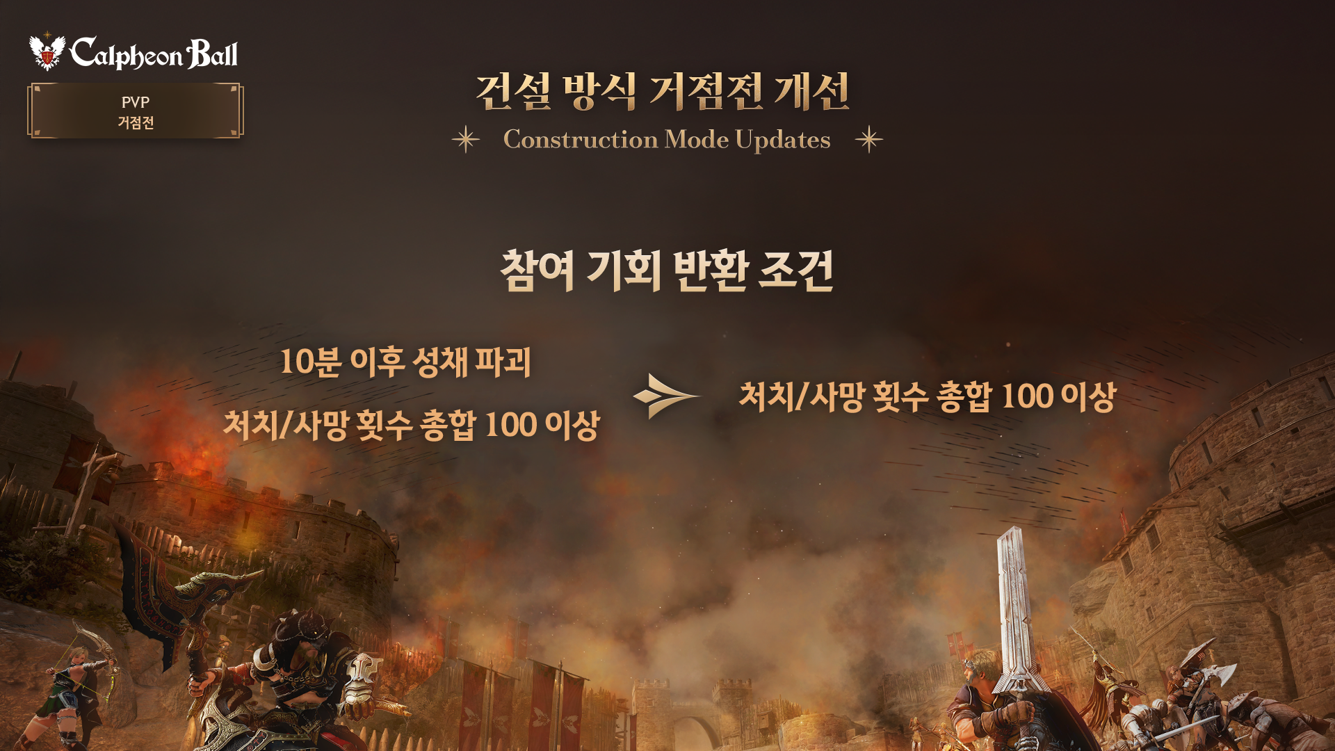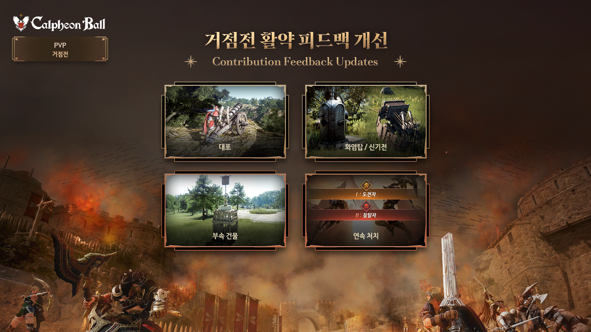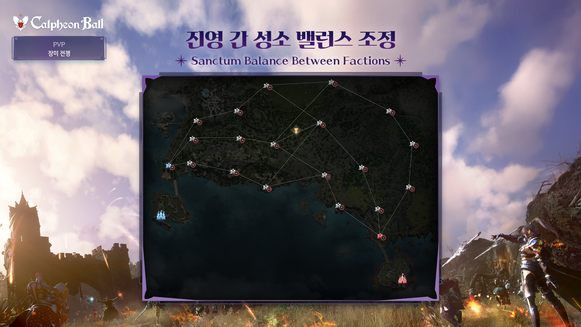 점령전 영지에서 칼페온이 제외되고, 발레노스와 세렌디아가 추가됩니다. 발레노스와 세렌디아 영지는 공성이 아닌 Free-for-All 규칙으로 진행됩니다.