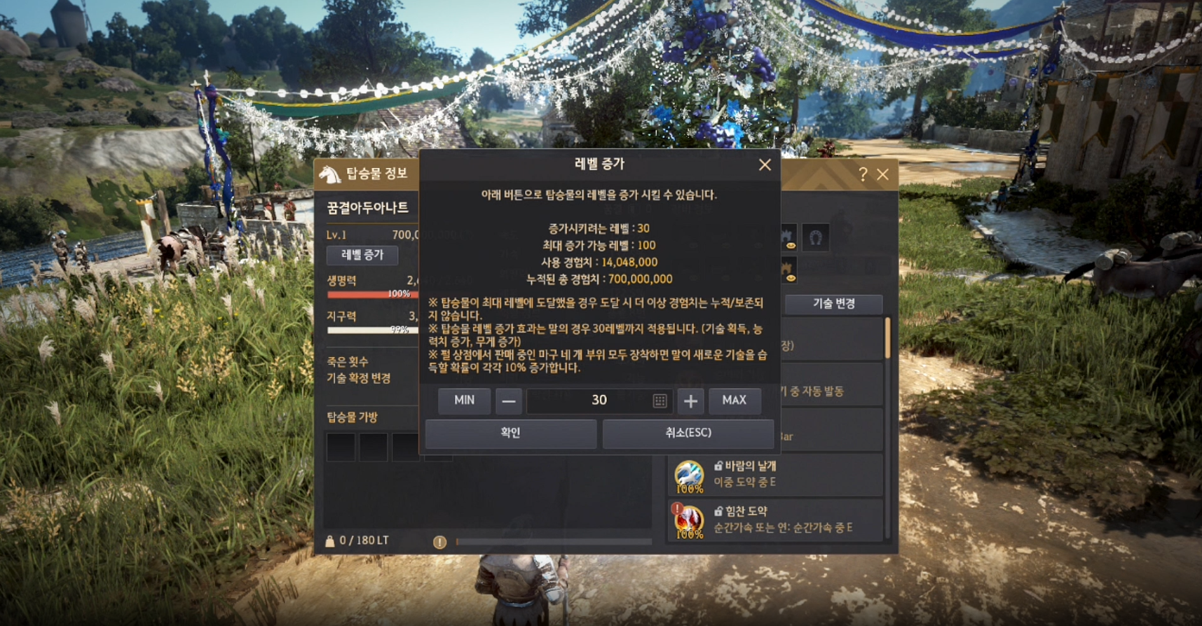 누적된 경험치를 소모하여 말 레벨을 상승시킬 수 있습니다.