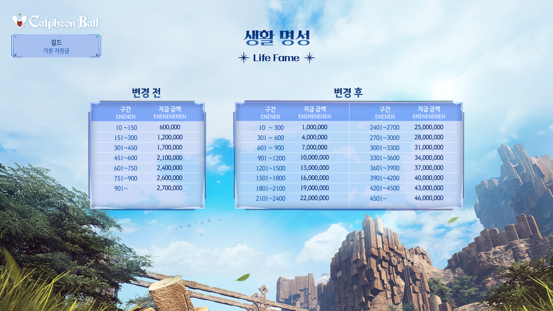 연맹을 해체하지 않고도 연맹 최대 인원 및 비율 변경이 가능하도록 개선됩니다.· 길드 제작 재료 수급처 변경 ·