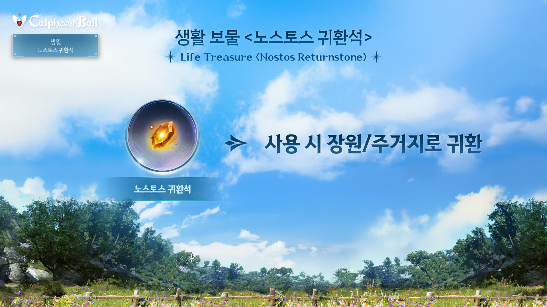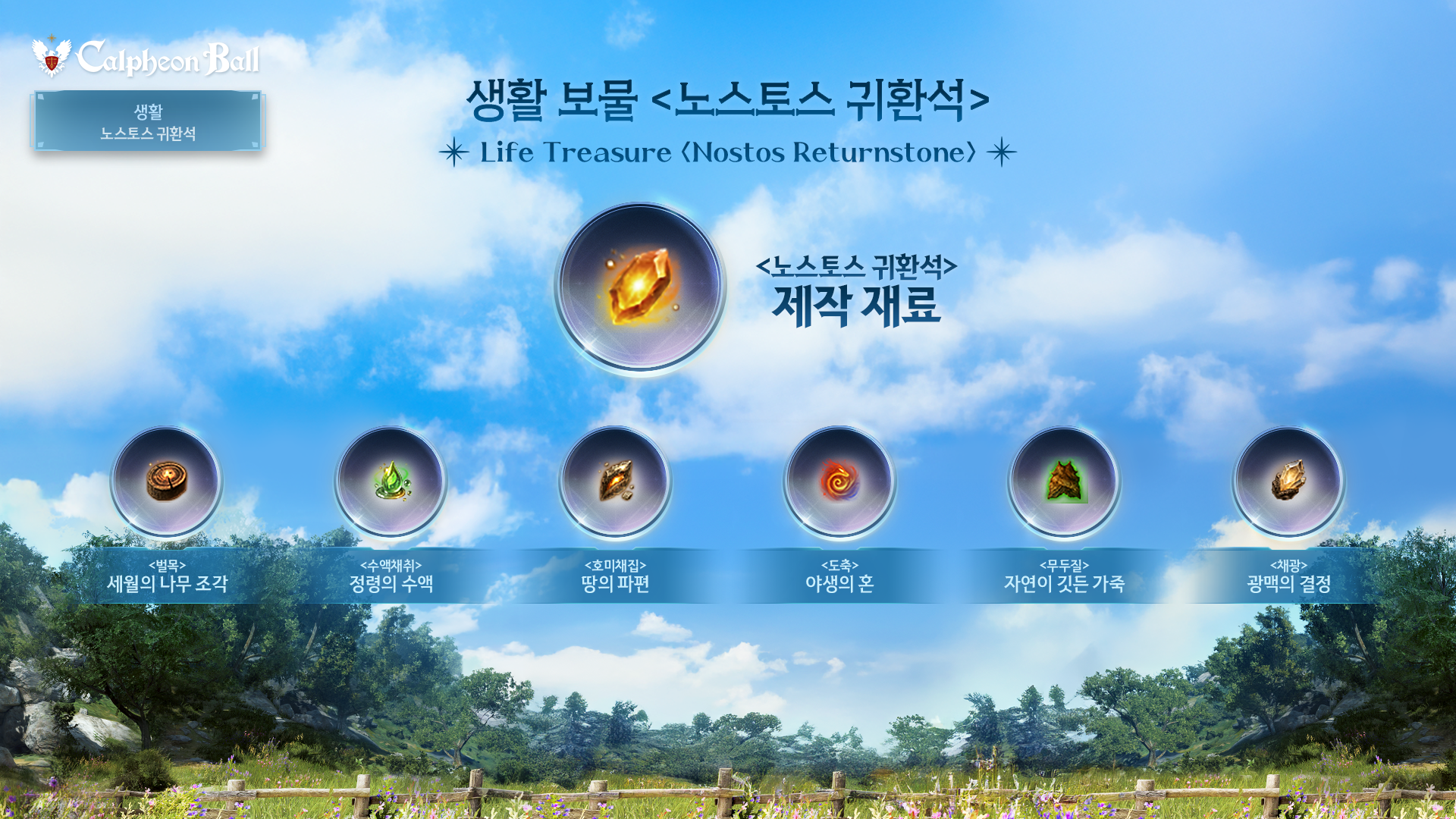 '노스토스 귀환석'의 제작 재료는 채집 활동을 통해 획득 가능하며, 통합 거래소에 등록이 가능합니다.