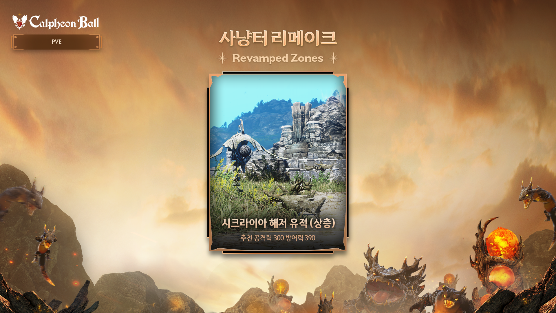 '시크라이아 해저 유적(상층)'이 추천 공격력/방어력(표기) 300/390 사냥터로 개편됩니다.