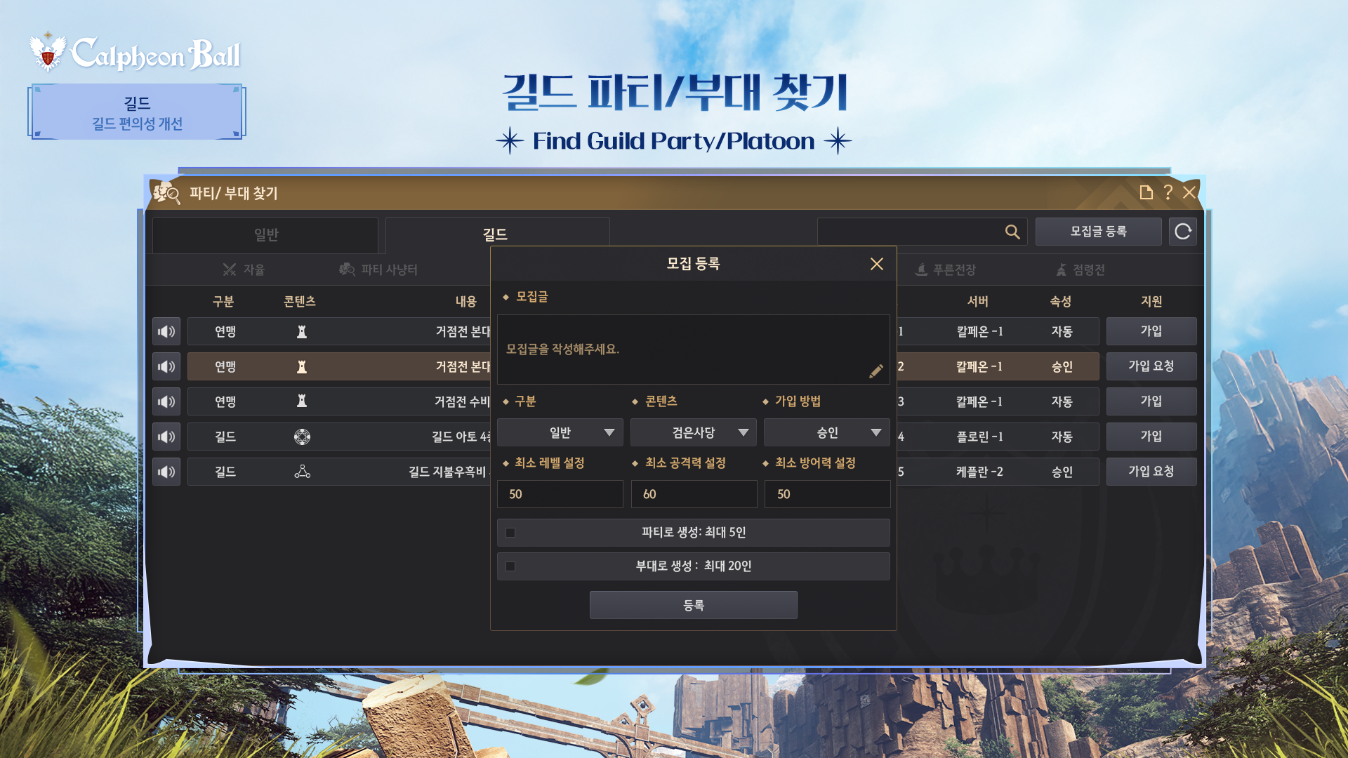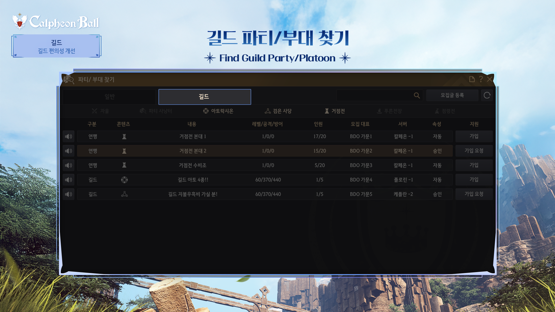 길드 코끼리, 길드 갤리선 제작 재료를 길드 상점에서 구매하거나 길드 콘텐츠로 수급할 수 있도록 변경됩니다.· 길드 파티/부대찾기 ·