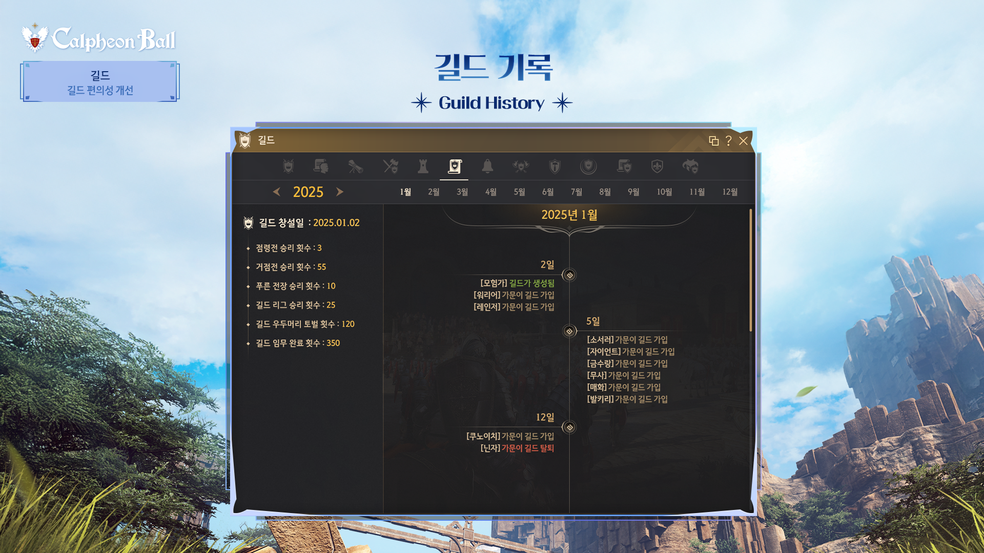 길드 연혁 페이지가 '길드 기록' 페이지로 변경됩니다.