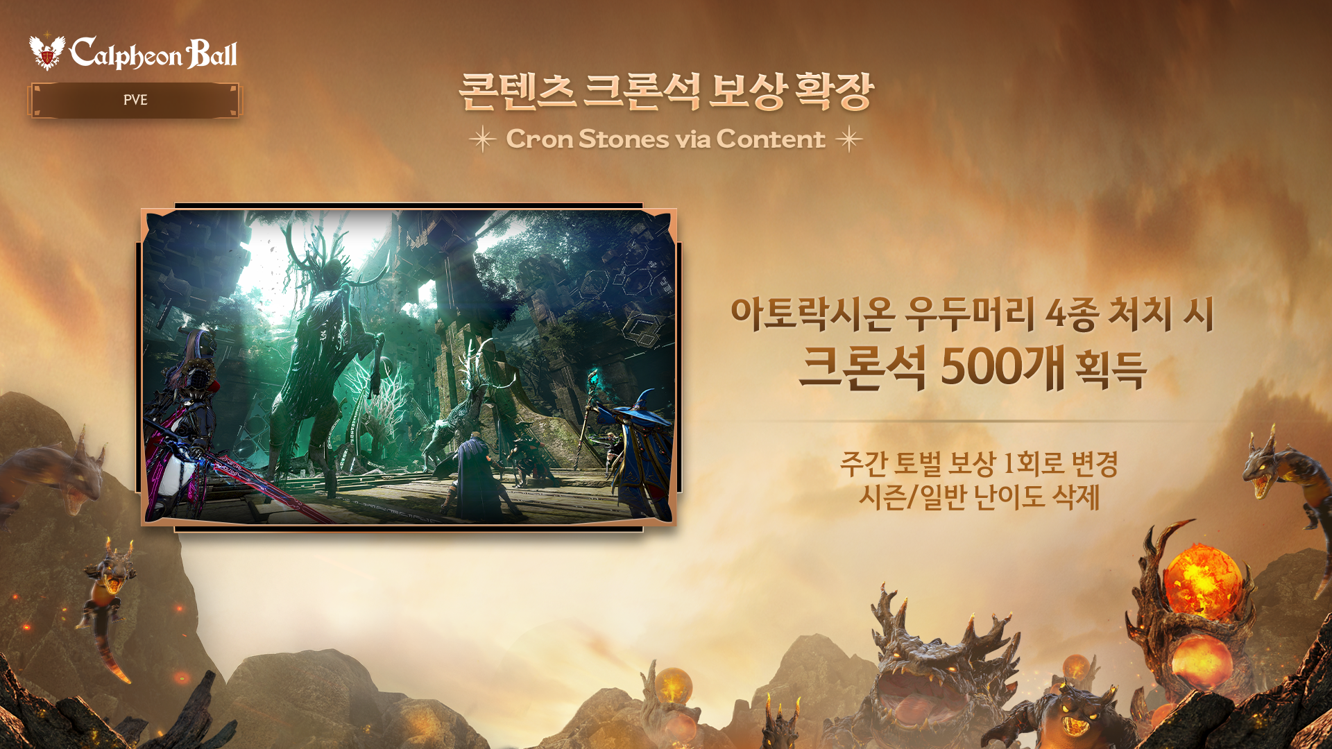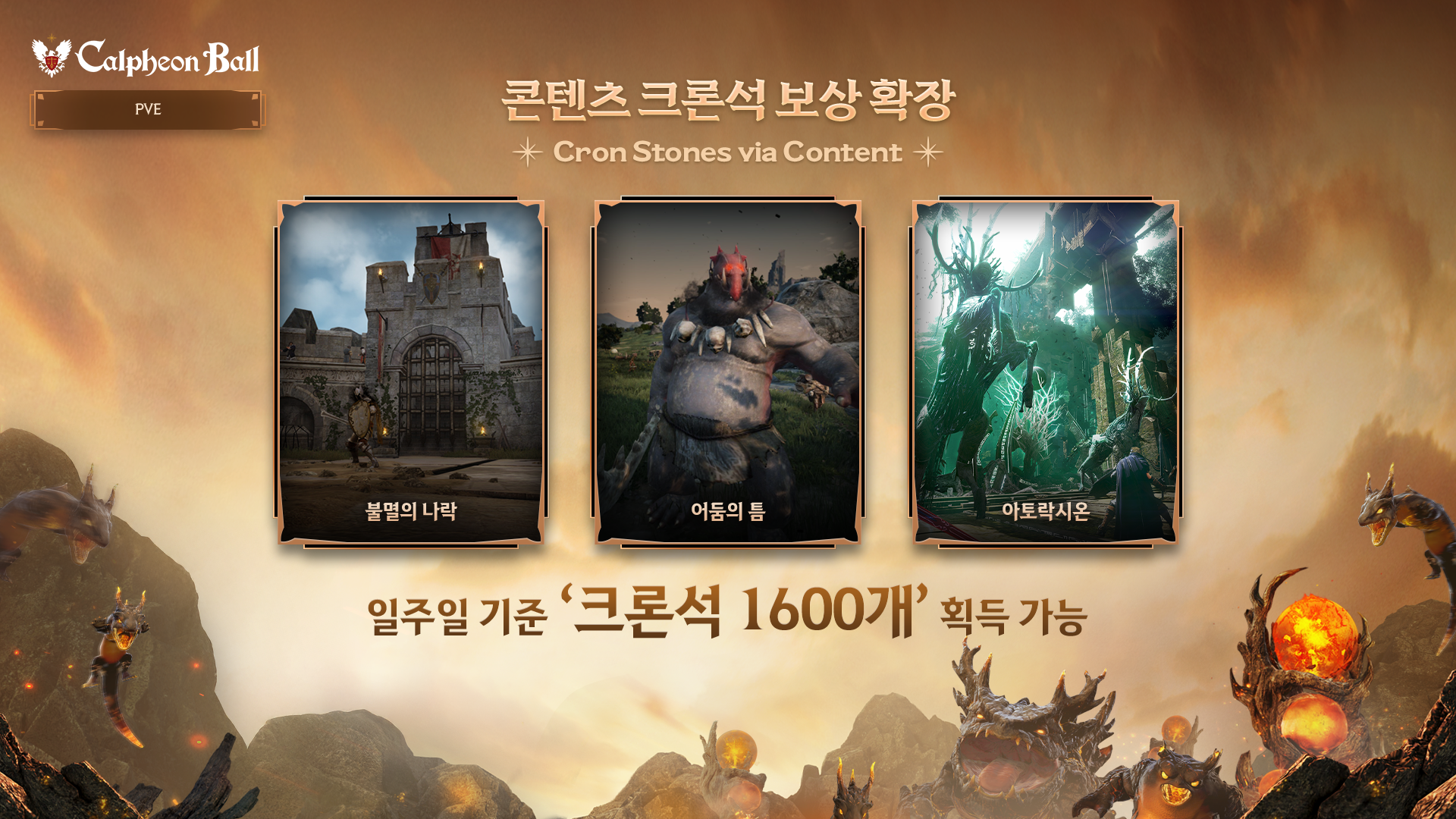 이에 따라 '불멸의 나락', '아토락시온', '어둠의 틈' 모두 클리어 시 매주 최대 1600개의 크론석을 획득하실 수 있습니다.
