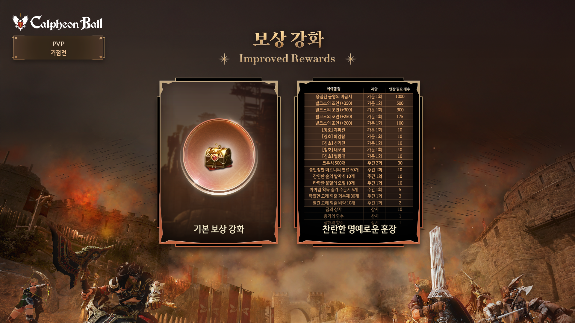 수성 측의 부속 건물 설치 영역이 확장됩니다. 트롤, 우우거, 대포, 파멸의 집행자를 성 내부에서 소환 가능하게 개선됩니다.· 공용 보상 추가 ·