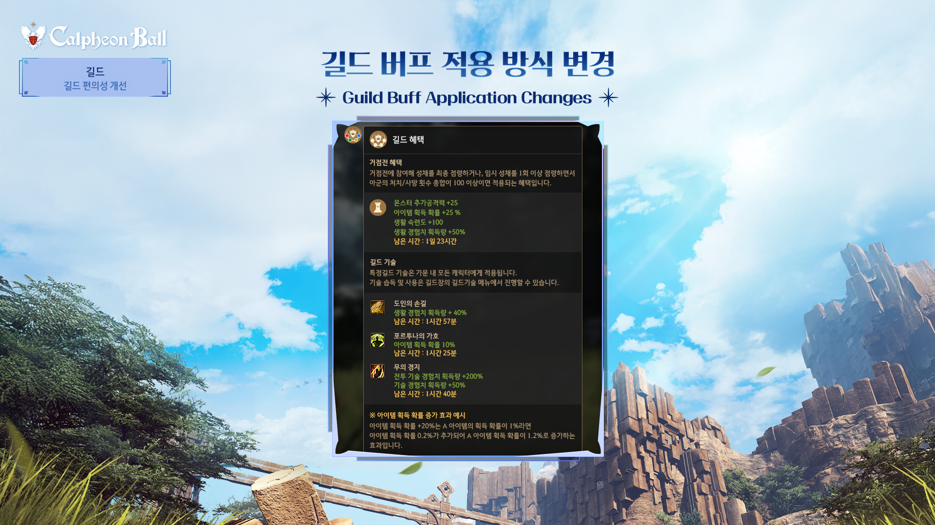 또한 길드 기술이 가문 단위로 적용되도록 개선됩니다.
