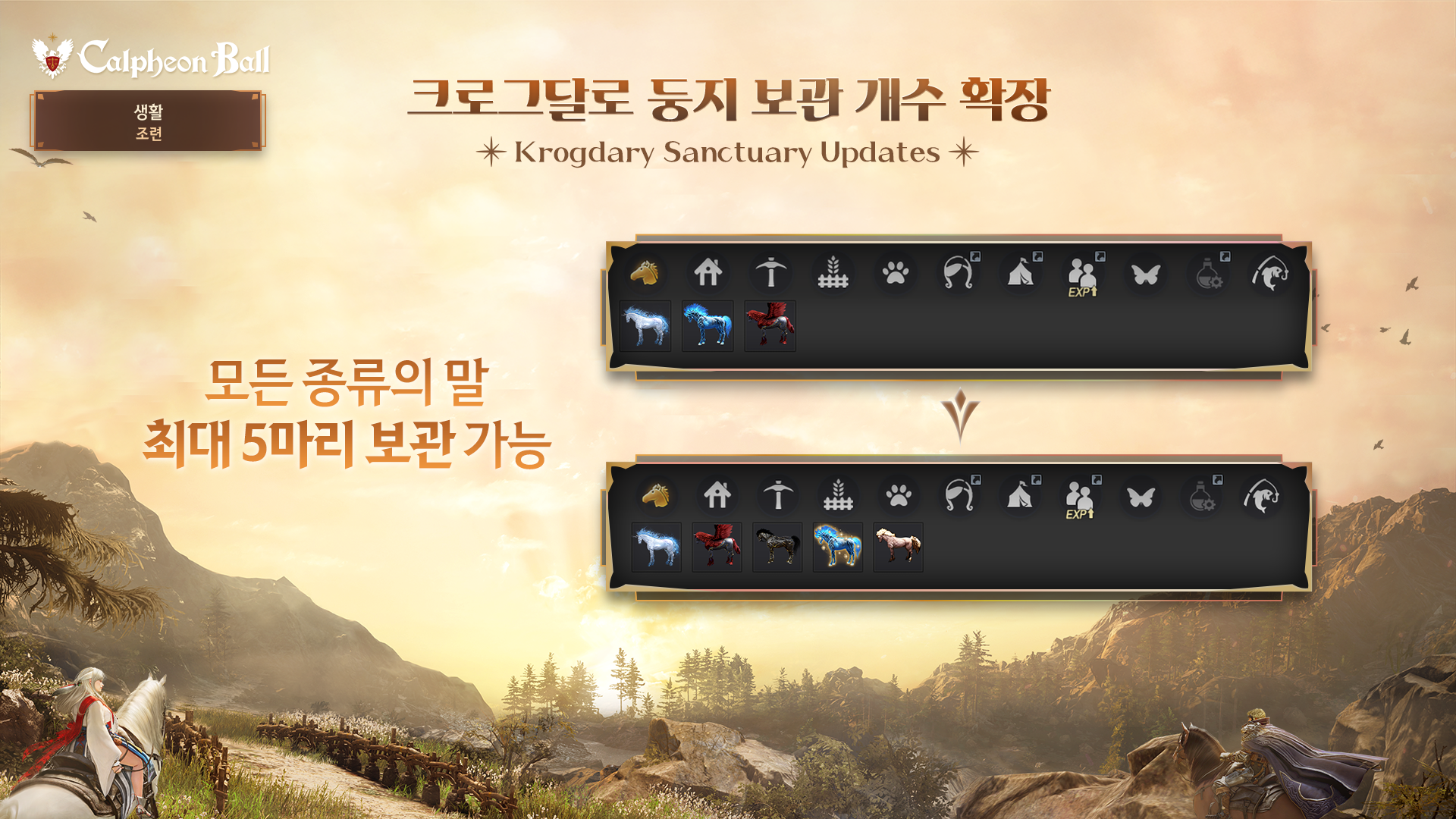 탑승물 레벨과 무관하게 고정된 조련 경험치를 획득할 수 있도록 변경됩니다.· 신규 야생마 추가 ·