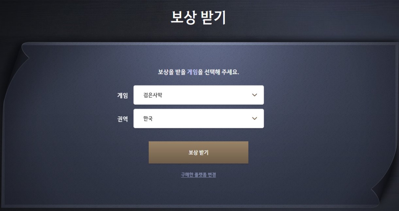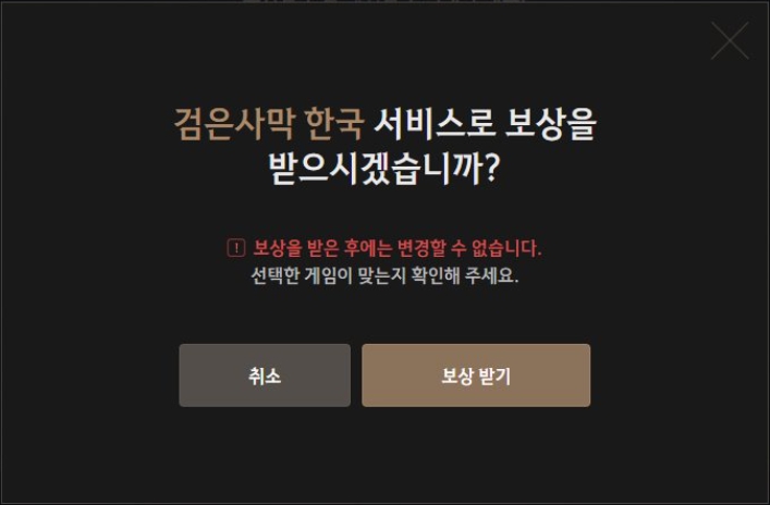 선택한 게임과 권역이 보상을 수령할 계정 정보와 일치하는지 최종 확인 후 [보상 받기]를 클릭합니다.