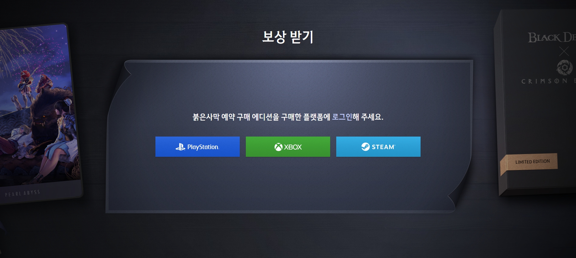 붉은사막 예약 구매 에디션을 구매한 플랫폼 계정으로 로그인합니다.