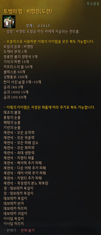 | 토벌 완료 보상 (예시 : 비형랑 (도전 난이도)) |